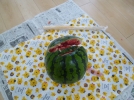 今日は、保育者が持って来てくれた大きなスイカをスイカ割りをして楽しみました。大きなスイカはなかなか割れなかったけれど割れると「わー!!」と歓声があがりました☆彡一口ずつ食べました。甘くて美味しかったね♪給食でも美味しいスイカを食べました。
