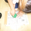 午後からは、さくら組は段ボールを使ってスイカの模様をつけました。