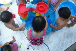 遊びにも慣れてカップでバシャバシャとかけたり、水鉄砲も上手に飛ばしたり、とっても楽しそうに遊んでいます♪