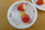 今日は朝のおやつにイチゴを食べました。とってもおいしくてみんな嬉しそうに食べていました♪